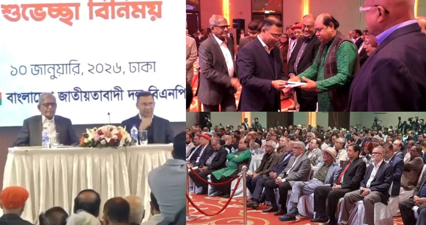 সাংবাদিকদের সঙ্গে শুভেচ্ছা বিনিময় করছেন বিএনপির চেয়ারম্যান তারেক রহমান। শনিবার বেলা সোয়া ১১টায় রাজধানীর বনানীর হোটেল শেরাটনের গ্র্যান্ড বলরুমে এই অনুষ্ঠান শুরু হয়। এতে দেশে বিভিন্ন গণমাধ্যমের সম্পাদক, সাংবাদিক এবং বিএনপির নেতারা উপস্থিত আছেন।