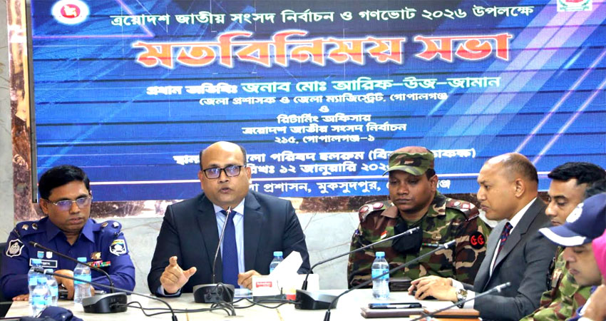 নির্বাচন পর্যবেক্ষণের কাজে প্রশাসন শতভাগ সতর্ক অবস্থানে রয়েছে বলে জানিয়েছেন গোপালগঞ্জের জেলা প্রশাসক আরিফ-উজ-জামান। তিনি বলেন, সুষ্ঠু ও শান্তিপূর্ণ নির্বাচন নিশ্চিত করতে আইনশৃঙ্খলা রক্ষাকারী বাহিনীসহ সংশ্লিষ্ট সবাইকে নিয়ে একযোগে কাজ করা হচ্ছে। ভোটকেন্দ্রের নিরাপত্তা নিশ্চিতে সকলের সহযোগিতা কামনা করি।