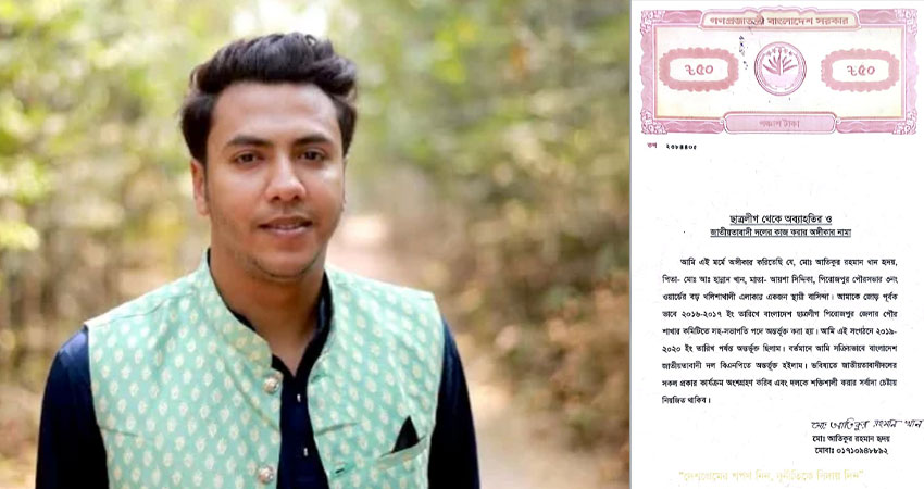 অঙ্গীকারনামা দিয়ে ছাত্রলীগ নেতার বিএনপিতে যোগদান