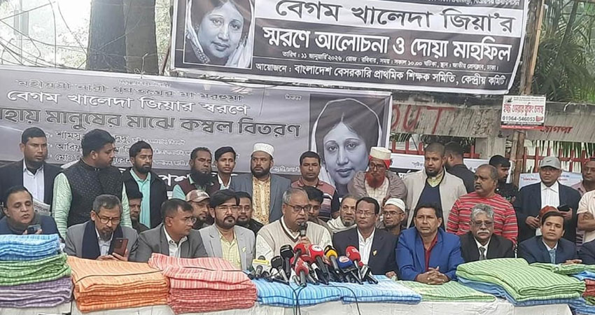 আজ বৃহস্পতিবার দুপুরে জাতীয় প্রেসক্লাবের সামনে জাতীয়তাবাদী পেশাজীবী দলের উদ্যোগে বেগম খালেদা জিয়ার স্মরণে অসহায় মানুষের মাঝে কম্বল বিতরণ অনুষ্ঠানে তিনি এসব কথা বলেন।