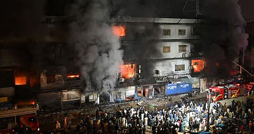 এতে বলা হয়- শনিবার দিবাগত রাতে শহরটির জিন্নাহ রোডের 'গুল প্লাজা' নামের বহুতল ভবনটিতে হঠাৎ আগুন ছড়িয়ে পড়ে। এ সময় ভেতরে আটকা পড়েন অনেকে। খবর পেয়ে দ্রুত ঘটনাস্থলে পৌঁছায় ফায়ার সার্ভিস। আগুন নির্বাপনে কাজ করে ফায়ার সার্ভিসের ১২টি ইউনিট। দীর্ঘসময় চেষ্টার পর আগুন নিয়ন্ত্রণে আনেন দমকল কর্মীরা।