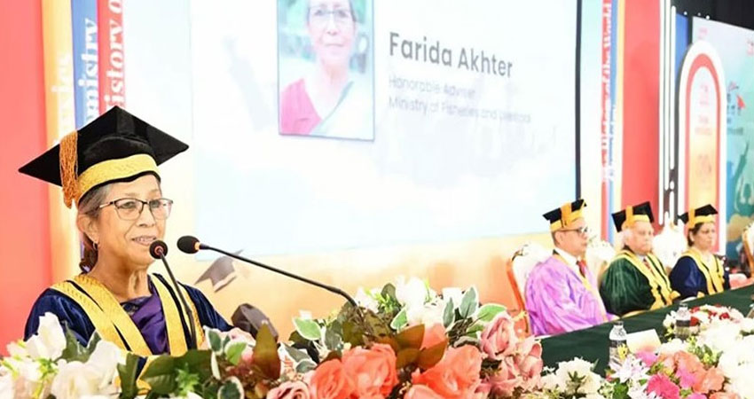 মৎস্য ও প্রাণিসম্পদ উপদেষ্টা ফরিদা আখতার বলেছেন, ডিগ্রি অর্জনই তরুণদের শেষ দায়িত্ব নয়। সমাজের একটি বড় অংশ এখনো উচ্চশিক্ষার সুযোগ থেকে বঞ্চিত থাকায় শিক্ষিত তরুণদের ওপর সমাজ পরিবর্তনের দায়িত্ব আরও বেশি।