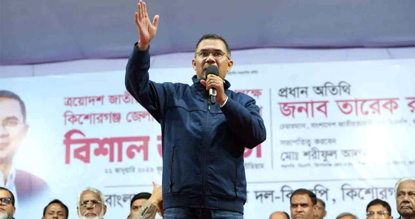 তারেক রহমান ভোর ৪টায় নারায়ণগঞ্জের আড়াইহাজার উপজেলার পাঁচরুখীর বেগেম আনোয়ারা ডিগ্রি কলেজ মাঠে সমাবেশে বক্তব্য দেন। এরপর সেখান থেকে তিনি ঢাকার উদ্দেশে রওনা হন। ভোরে তারেক রহমান সমাবেশস্থলে পৌঁছালে মাঠজুড়ে উচ্ছ্বাস ছড়িয়ে পড়ে। বৃহস্পতিবার বিকেল থেকে লাখো মানুষ শুক্রবার ভোর পর্যন্ত্র তারেক রহমানকে দেখার জন্য অপেক্ষা করতে থাকেন। সমাবেশ স্থলে পৌঁছে তিনি নেতাকর্মীদের উদ্দেশে হাত নেড়ে শুভেচ্ছা জানান। একপর্যায়ে মঞ্চ থেকে নেমে এসে জনতার সঙ্গে হাত মেলান। এর আগে বৃহস্পতিবার নির্বাচনী প্রচারের প্রথম দিন সিলেট থেকে সমাবেশ শুরু করেন তিনি।