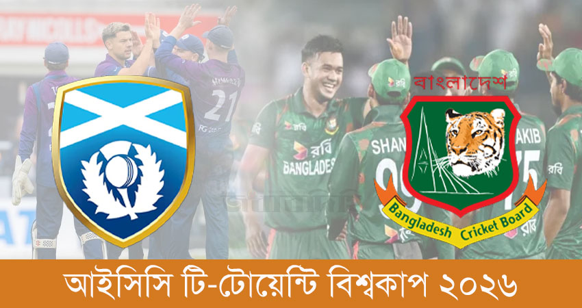 ক্রিকবাজ জানিয়েছে, ৭ ফেব্রুয়ারি ভারত ও শ্রীলঙ্কায় শুরু হতে যাওয়া টি-টোয়েন্টি বিশ্বকাপ ২০২৬-এ বাংলাদেশের জায়গা দখল করেছে স্কটল্যান্ড। কয়েক দিন আগে আন্তর্জাতিক ক্রিকেট কাউন্সিল (আইসিসি) বাংলাদেশ ক্রিকেট বোর্ডকে ২৪ ঘণ্টার সময়সীমা দেওয়ার পর এবং শনিবার (২৪ জানুয়ারি) অবশেষে তারা এই সুযোগ পায়।