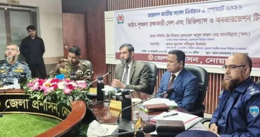 আজ মঙ্গলবার সকালে নোয়াখালী জেলা প্রশাসকের সম্মেলন কক্ষে আসন্ন ত্রয়োদশ জাতীয় সংসদ নির্বাচন ও গণভোট উপলক্ষে আইনশৃঙ্খলা রক্ষকারী সেল এবং ভিজিলেন্স ও অবজারভেশন টিমের সঙ্গে মতবিনিময় সভায় তিনি এ কথা বলেন।
