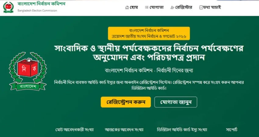 আসন্ন ত্রয়োদশ জাতীয় সংসদ নির্বাচন ও গণভোট সামনে রেখে সাংবাদিক ও পর্যবেক্ষকদের কার্ড প্রদানের প্রক্রিয়ায় বড় পরিবর্তন এনেছে নির্বাচন কমিশন (ইসি)। এবার প্রথমবারের মতো সাংবাদিক পর্যবেক্ষক কার্ড ও গাড়ির স্টিকার পেতে অনলাইনে আবেদন বাধ্যতামূলক করা হয়েছে।