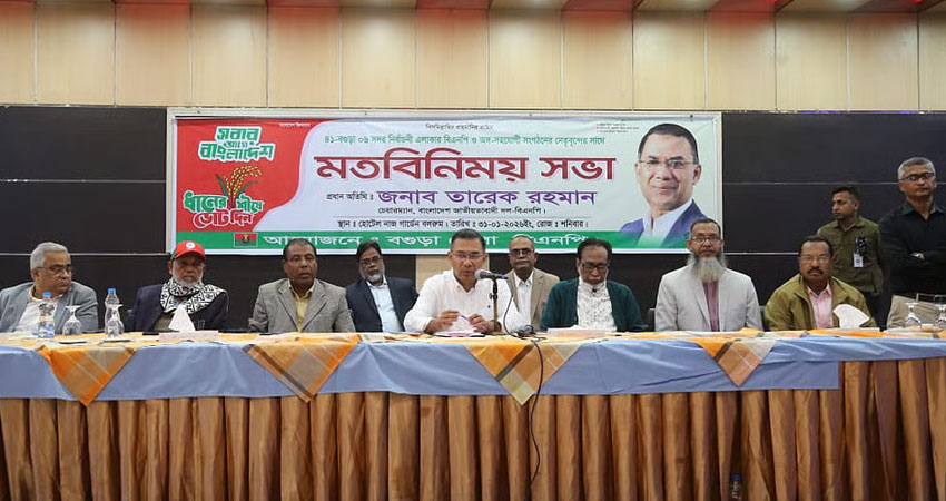 আজ শনিবার বেলা ১১টায় বগুড়ার চার তারকা হোটেল নাজ গার্ডেনের বলরুমে নিজ নির্বাচনী এলাকা বগুড়া-৬ (সদর) আসনের নেতাদের সঙ্গে মতবিনিময় সভায় প্রধান অতিথির বক্তব্যে তিনি এসব কথা বলেন। এদিন সকাল সাড়ে ১০টায় সভা শুরু হয়। শুরুতে স্থানীয় নেতাদের বক্তব্য শোনেন বিএনপির চেয়ারম্যান তারেক রহমান।