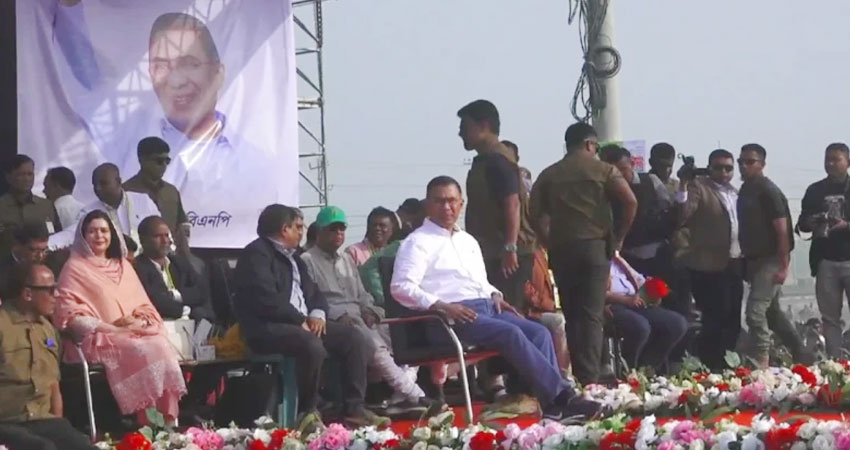 এর আগে দুপুর ১২টার দিকে আইনশৃঙ্খলা বাহিনী মঞ্চ ও আশপাশের পুরো এলাকা তল্লাশি করে নিরাপত্তা ব্যবস্থা নিশ্চিত করে। তারেক রহমানের আগমন ঘিরে পুরো এলাকাজুড়ে উৎসবমুখর পরিবেশ বিরাজ করছে।