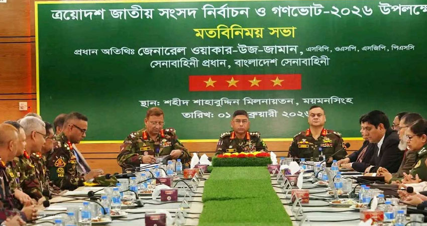 আইএসপিআর জানায়, সফরকালে সেনাবাহিনী প্রধান ময়মনসিংহ সিটি কর্পোরেশনের সম্মেলন কক্ষে ঊর্ধ্বতন পর্যায়ের সামরিক কর্মকর্তা, বিভিন্ন আইনশৃঙ্খলা রক্ষাকারী বাহিনী ও অসামরিক প্রশাসনের কর্মকর্তাদের সঙ্গে মতবিনিময় করেন। মতবিনিময়ে জাতীয় সংসদ নির্বাচনকে শান্তিপূর্ণ, নিরপেক্ষ ও সুষ্ঠুভাবে সম্পন্ন করার লক্ষ্যে আন্তঃপ্রাতিষ্ঠানিক সমন্বয় এবং সামগ্রিক নিরাপত্তা ব্যবস্থাপনা নিয়ে আলোচনা হয়। সেনাবাহিনী প্রধান পেশাদারিত্ব, নিরপেক্ষতা, শৃঙ্খলা, ধৈর্য ও নাগরিকবান্ধব আচরণের মাধ্যমে দায়িত্ব পালনের ওপর বিশেষ গুরুত্বারোপ করেন।