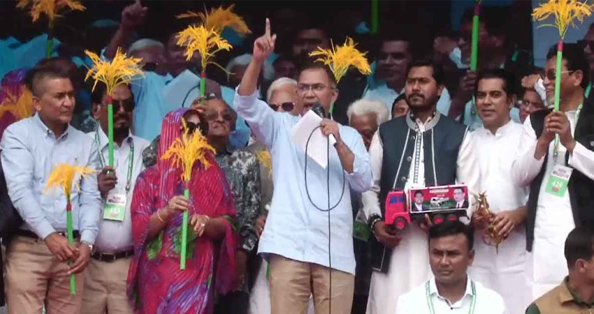 আজ বুধবার (৪ ফেব্রুয়ারি) দুপুর ১টায় বরিশাল নগরীর ঐতিহাসিক বেলস পার্ক ময়দানে আয়োজিত নির্বাচনি জনসভায় এসব কথা বলেন।