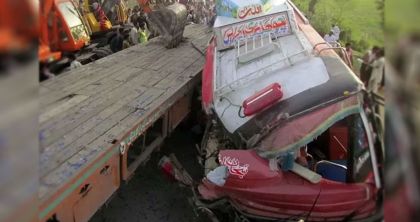 পাকিস্তানের সিন্ধু প্রদেশের খাইরপুর জেলার টান্ডো মাস্তি এলাকায় জাতীয় মহাসড়কে একটি যাত্রীবাহী কোচের সঙ্গে ভারী কংক্রিট গার্ডার বহনকারী ট্রেইলারের সংঘর্ষের ঘটনা ঘটেছে। রোববার (১৫ ফেব্রুয়ারি) ভোরে ঘটা এ দুর্ঘটনায় অন্তত ১১ জন নিহত হয়েছেন। নিহতদের মধ্যে ৯ জন যাত্রী, বাসচালক ও কন্ডাক্টর রয়েছেন বলে উদ্ধারকারী সূত্রে জানা গেছে।