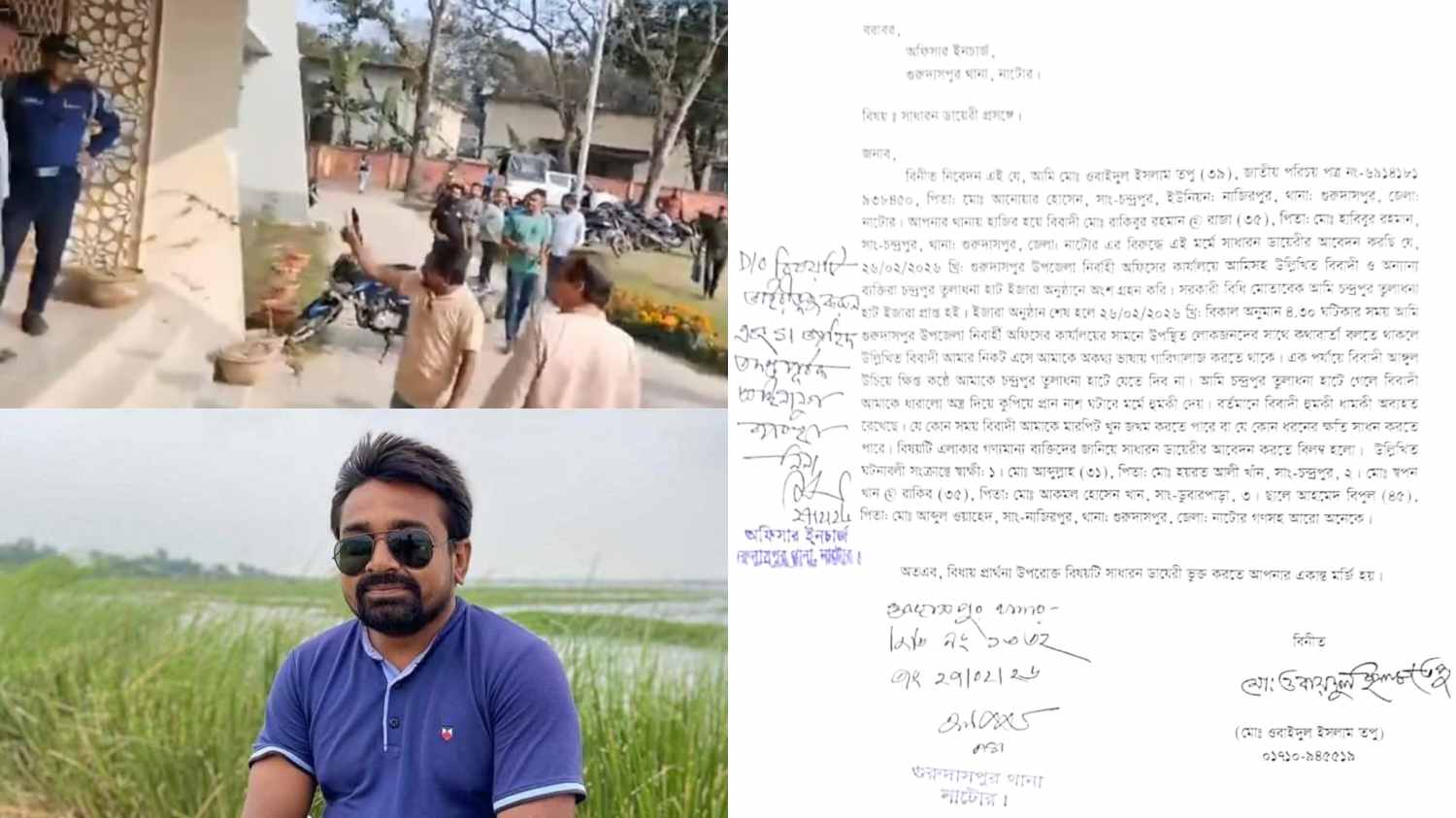 এ বিষয়ে গুরুদাসপুর থানার অফিসার ইনচার্জ (ওসি) মো. শফিকুজ্জামান সরকার বলেন, “চাঁদা দাবির বিষয়টি স্পষ্ট নয়। তবে এলাকায় গেলে মেরে হাড্ডি গুড়া গুড়া করে ফেলবে—এমন হুমকি দেওয়ার অভিযোগ পাওয়া গেছে। আমরা লিখিত জিডি গ্রহণ করেছি। দ্রুত সময়ে অভিযুক্তকে গ্রেপ্তার করে আইনানুগ ব্যবস্থা নেওয়া হবে।”