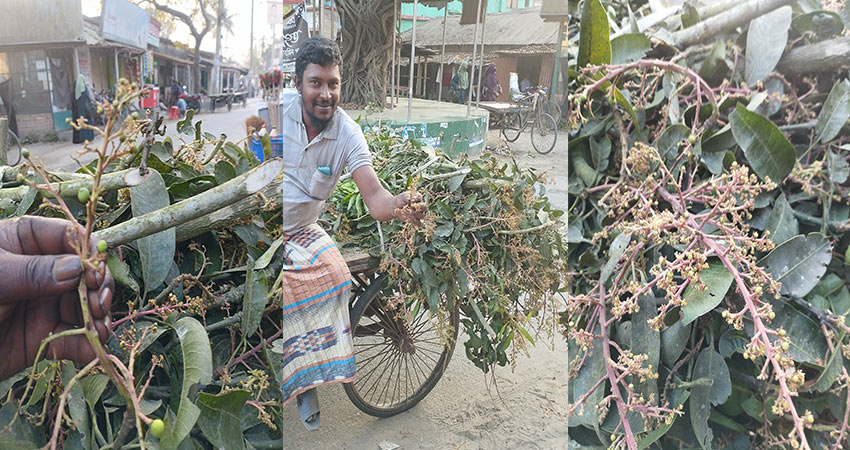 সরেজমিনে উপজেলার জামনগর বাজার এলাকায় দেখা যায়, এক ভ্যানচালক তার ছাগলকে খাওয়ানোর জন্য মুকুল ও গুটিতে ভরপুর আমগাছের ডাল বহন করছেন। নাম প্রকাশে অনিচ্ছুক ওই ভ্যানচালক জানান, রাস্তায় যাওয়ার সময় একটি আমবাগানে গাছ কাটতে দেখে তিনি সেখান থেকে কিছু ডাল নিয়ে আসেন ছাগলের খাবারের জন্য।