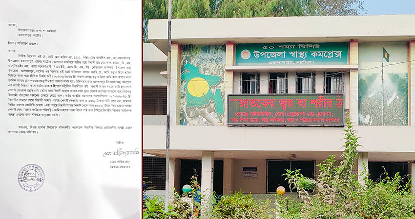 ভুক্তভোগী মো. রাজীব বলেন, হাসপাতালে গেলে সেখানে কর্তব্যরত স্যাকমো ডা. মো. আলামিন তার পায়ের ক্ষত দেখে সেলাই করার কথা বলেন। একপর্যায়ে তিনি জানান, হাসপাতালে অপারেশন করা যাবে না এবং ভালো চিকিৎসার জন্য তাকে জননী ফার্মেসির প্রাইভেট চেম্বারে যেতে বলেন। পরে তার কথামতো সেখানে গেলে ডা. আল আমিন ডিউটির সময়ই সেখানে গিয়ে তার পায়ে সেলাই করেন এবং ৫ হাজার টাকা দাবি করেন। পরে তিনি ৩ হাজার টাকা পরিশোধ করেন।
