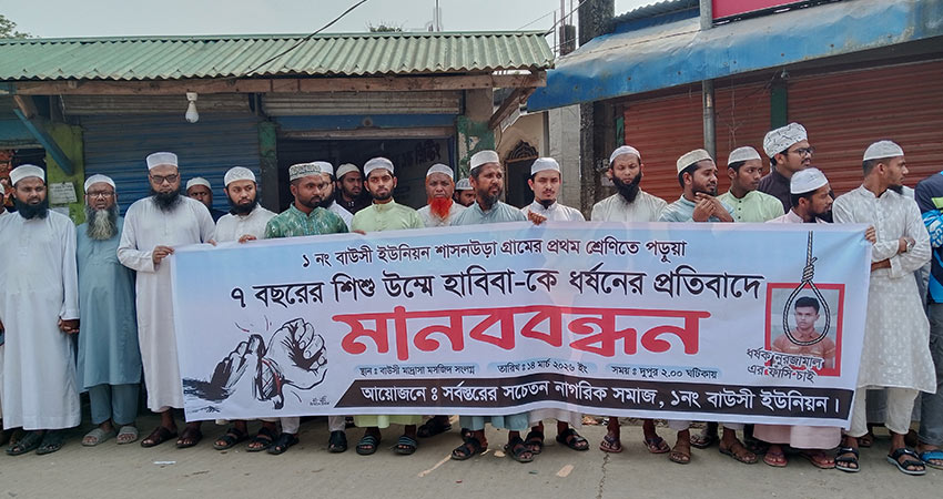 বক্তারা সাত বছরের কোমলমতি শিশুর ওপর এমন পাশবিক নির্যাতনের তীব্র নিন্দা জানিয়ে বলেন, এই ঘটনা পুরো সমাজকে কলঙ্কিত করেছে। অবিলম্বে অভিযুক্ত নুরজামালকে গ্রেপ্তার করে দৃষ্টান্তমূলক শাস্তির আওতায় আনতে হবে যাতে ভবিষ্যতে আর কেউ এমন ধৃষ্টতা দেখাতে না পারে।