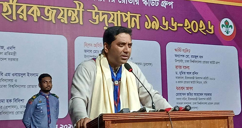 আজ শুক্রবার (৩ এপ্রিল) টিএসসি মিলনায়তনে ঢাকা বিশ্ববিদ্যালয় রোভার স্কাউট গ্রুপের ৬০ বছর হীরকজয়ন্তী উদযাপন অনুষ্ঠানে প্রধান অতিথির বক্তব্যে তিনি এ কথা বলেন।