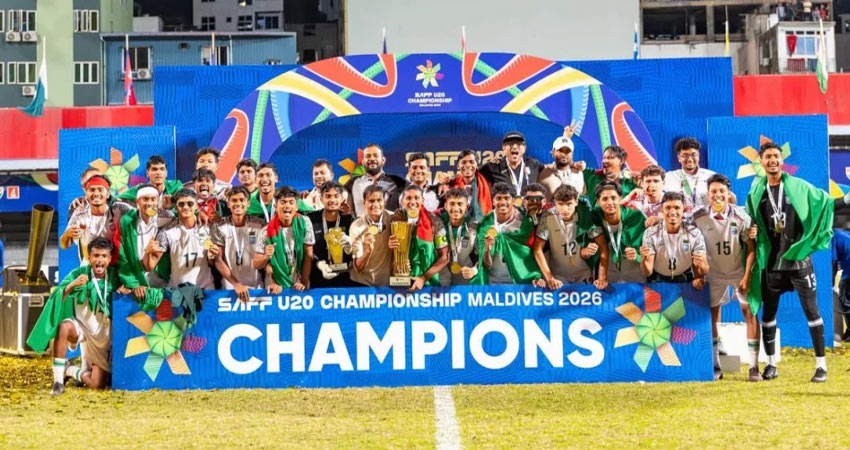 অনূর্ধ্ব-২০ সাফ চ্যাম্পিয়নশিপে অপরাজিত চ্যাম্পিয়ন হয়েছে বাংলাদেশ। শুক্রবার (৩ এপ্রিল) ফাইনালে টাইব্রেকারে ভারতকে হারিয়ে শিরোপা নিজেদের করে নেয় বাংলাদেশের যুবারা। এই ঐতিহাসিক সাফল্যের জন্য হাতিরঝিলে ফুটবলারদের সংবর্ধনার আয়োজন করেছে বাংলাদেশ ফুটবল ফেডারেশন (বাফুফে)।