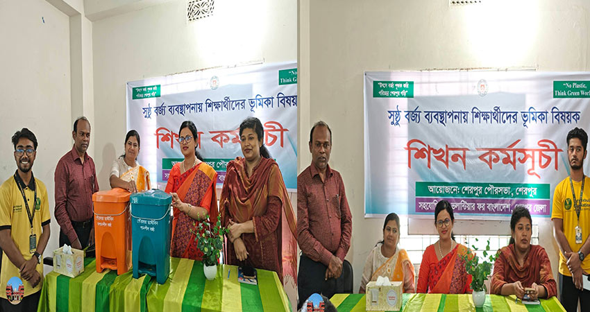আগামী প্রজন্মকে বর্জ্য ব্যবস্থাপনা বিষয়ে সচেতন করে গড়ে তুলতে শেরপুর পৌরসভার উদ্যোগে “সুষ্ঠু বর্জ্য ব্যবস্থাপনায় শিক্ষার্থীদের ভূমিকা” শীর্ষক শিখন কর্মসূচি অনুষ্ঠিত হয়েছে। গতকাল বৃহস্পতিবার ভলেন্টিয়ার ফর বাংলাদেশ শেরপুর জেলা শাখার সহযোগিতায় এই আয়োজন করা হয়।