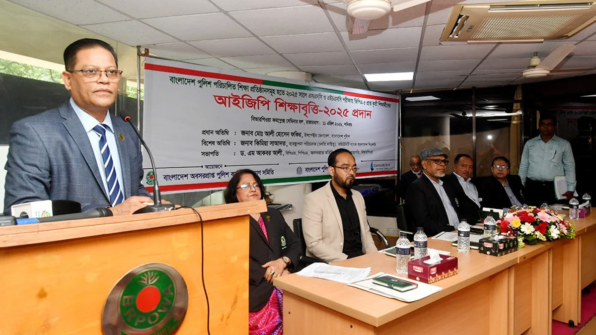 মেধা-মননশীলতা দিয়ে বিশ্বে বাংলাদেশের মর্যাদা বাড়াতে শিক্ষার্থীদের প্রতি আহ্বান জানিয়েছেন বাংলাদেশ পুলিশের মহাপরিদর্শক (আইজিপি) মো. আলী হোসেন ফকির। তিনি আজ সকালে রাজধানীর রাজারবাগে বাংলাদেশ অবসরপ্রাপ্ত পুলিশ অফিসার্স কল্যাণ সমিতি কমপ্লেক্স সেমিনার হলে সমিতি আয়োজিত আইজিপি শিক্ষাবৃত্তি-২০২৫ প্রদান অনুষ্ঠানে প্রধান অতিথির বক্তব্যে এ আহ্বান জানান।