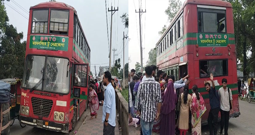 নেত্রকোনা-ময়মনসিংহ রুটে চলাচলকারী আন্তঃজেলা বিআরটিসি বাস সার্ভিস বন্ধ করে দেওয়ার লক্ষ্যে একটি মহলের অপতৎপরতার অভিযোগ উঠেছে। অতিরিক্ত ভাড়া আদায় ও অসদাচরণের অভিযোগ তুলে ইতোমধ্যে মানববন্ধনসহ নানা কর্মসূচিও পালন করা হয়েছে।