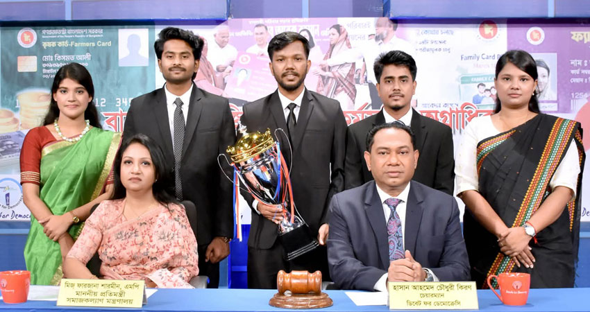 বিএনপি সরকারের নির্বাচনী প্রতিশ্রুতি অনুযায়ী ‘ফ্যামিলি কার্ড’ কার্যক্রমকে একটি ফ্ল্যাগশিপ প্রোগ্রাম হিসেবে অন্তর্ভুক্ত করা হয়েছে বলে জানিয়েছেন সমাজকল্যাণ প্রতিমন্ত্রী ফারজানা শারমীন। শনিবার এফডিসিতে বাজেটে সামাজিক সুরক্ষা কর্মসূচির অগ্রাধিকার নিয়ে আয়োজিত এক ছায়া সংসদ বিতর্ক প্রতিযোগিতায় প্রধান অতিথির বক্তব্যে তিনি এ কথা বলেন। অনুষ্ঠানে সভাপতিত্ব করেন ‘ডিবেট ফর ডেমোক্রেসি’র চেয়ারম্যান হাসান আহমেদ চৌধুরী কিরণ। প্রতিযোগিতাটি আয়োজন করে ডিবেট ফর ডেমোক্রেসি।