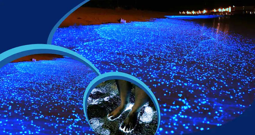 এই জাদুকরি নীল আলোর নেপথ্যে রয়েছে সমুদ্রের অতি ক্ষুদ্র কিছু জীব, যাদের নাম প্লাঙ্কটন। ঢেউয়ের ঝাপটায় বা মানুষের পায়ের ছোঁয়ায় যখনই পানিতে আলোড়ন তৈরি হয়, তখনই এদের শরীর থেকে ঠিকরে বের হয় নীলচে আলো।