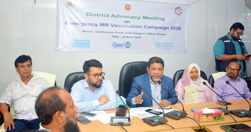 হাম-রুবেলা ক্যাম্পেইন ২০ এপ্রিল থেকে ১০ মে ২০২৬ তারিখ পর্যন্ত কার্যক্রম চলমান রয়েছে। এই সময়ের মধ্যে ৬ মাস থেকে ৫ বছরের কম বয়সী সকল শিশুকে এক ডোজ হাম-রুবেলা টিকা প্রদান করা হচ্ছে। এরই ধারাবাহিকতায় আজ (সোমবার) খুলনা সিভিল সার্জন দপ্তরের সম্মেলনকক্ষে জেলা পর্যায়ের অ্যাডভোকেসি সভা অনুষ্ঠিত হয়।