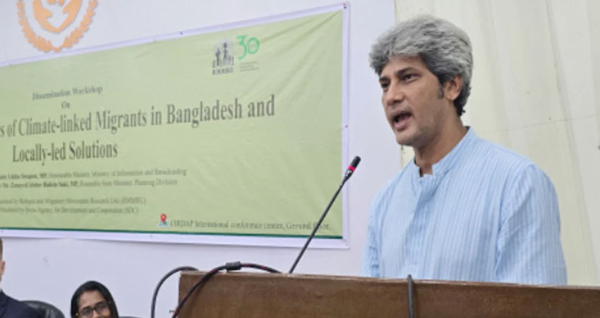 জনগণের ম্যান্ডেট নিয়ে আসা পরিবর্তনগুলোর ব্যাপারে সরকার দৃঢ়প্রতিজ্ঞ বলে জানিয়েছেন অর্থ ও পরিকল্পনা প্রতিমন্ত্রী মো. জোনায়েদ আব্দুর রহিম সাকি। মঙ্গলবার রাজধানীর সিরডাপ মিলনায়তনে ‘বাংলাদেশে জলবায়ু পরিবর্তনজনিত অভিবাসীদের অভিযোজন চ্যালেঞ্জ ও স্থানীয় পর্যায়ের সমাধান’ শীর্ষক এক কর্মশালায় বিশেষ অতিথির বক্তব্যে তিনি এ কথা বলেন। রিফিউজি অ্যান্ড মাইগ্রেটরি মুভমেন্টস রিসার্চ ইউনিট (রামরু) ও সুইজারল্যান্ড সরকারের উন্নয়ন সংস্থা (এসডিসি) যৌথভাবে এ অনুষ্ঠানের আয়োজন করে।