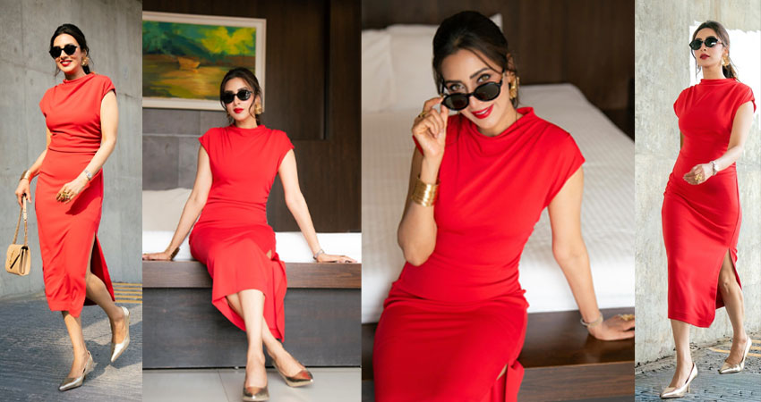হাঁটু পর্যন্ত ঢাকা সেই ড্রেসটির নিচের অংশে ছিল একটি দৃষ্টিনন্দন স্লিট। চোখে কালো সানগ্লাস, কানে সোনালি ইয়ার রিং এবং ড্রেসের সঙ্গে মিলিয়ে লাল লিপস্টিকে নানা পোজে বসে থাকা, আবার হেঁটে চলার ফ্যাশন ডিভা লুকও ধরা পড়ে- সব মিলিয়ে এক গ্ল্যামারাস অপরূপ অনন্যা বিদ্যা সিনহা মিম। তার এই ‘রেড হট’ অবতার নেটিজেনদের নজর কেড়েছে মুহূর্তেই।