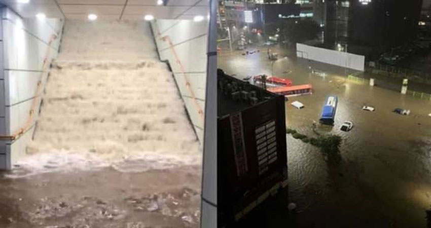 দক্ষিণ কোরিয়ার রাজধানী সিউলে রেকর্ড পরিমাণ বৃষ্টিতে বাড়িঘর, রাস্তা ও পাতাল রেল স্টেশন প্লাবিত হয়েছে। বিদ্যুৎ বিচ্ছিন্ন হয়ে পড়েছে বিভিন্ন এলাকায় এবং শত শত লোককে নিরাপদ স্থানে সরিয়ে নেওয়া হয়েছে।