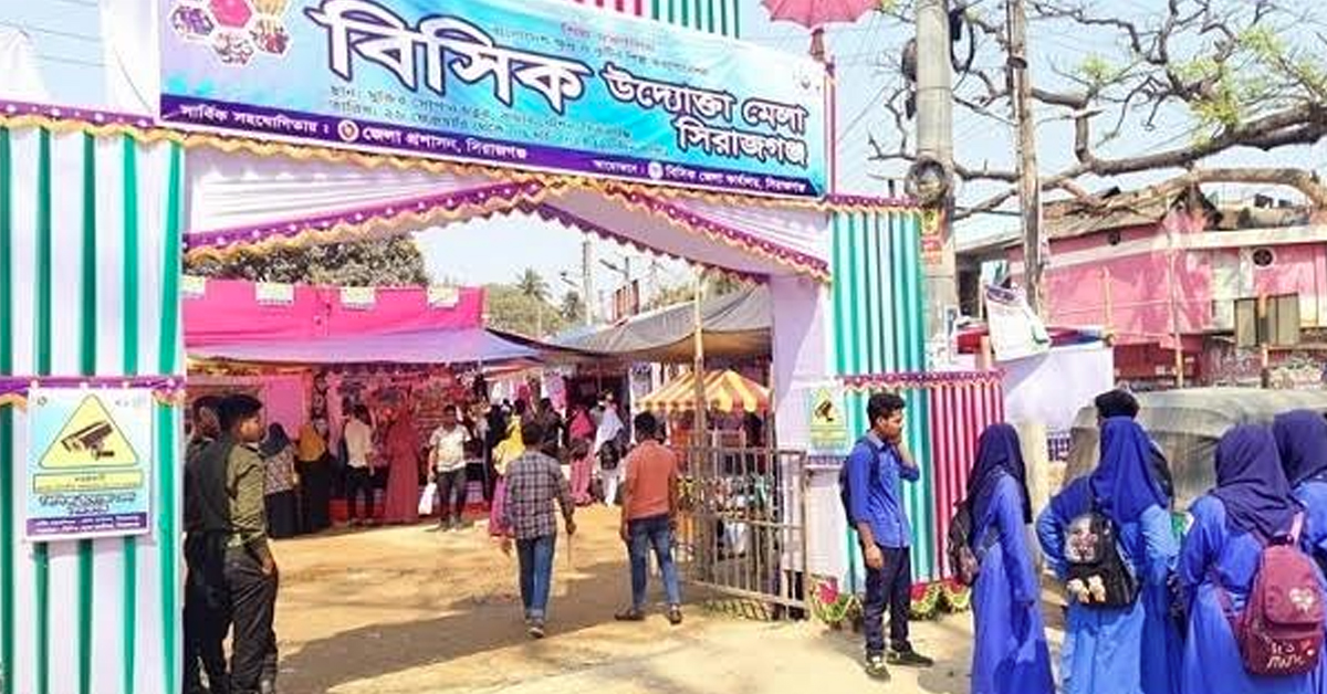 সিরাজগঞ্জ পৌর শহরের মুক্তির সোপানে জমে উঠেছে বাংলাদেশ ক্ষুদ্র ও কুটির শিল্প করপোরেশনের (বিসিক) উদ্যোক্তা মেলা। ক্ষুদ্র ও মাঝারি উদ্যোক্তাদের পণ্য প্রচার-প্রসার বাজারজাতকরণে ১০ দিনব্যাপী এ মেলা শুরু হয় ২৬ ফেব্রুয়ারি, যা চলবে ৭ মার্চ পর্যন্ত।